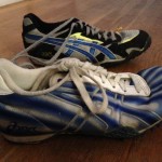 The top gray/black pair were my distances racing shoes and then I realized I was a terrible distance runner and switched to sprinting and pole vaulting (bottom pair).